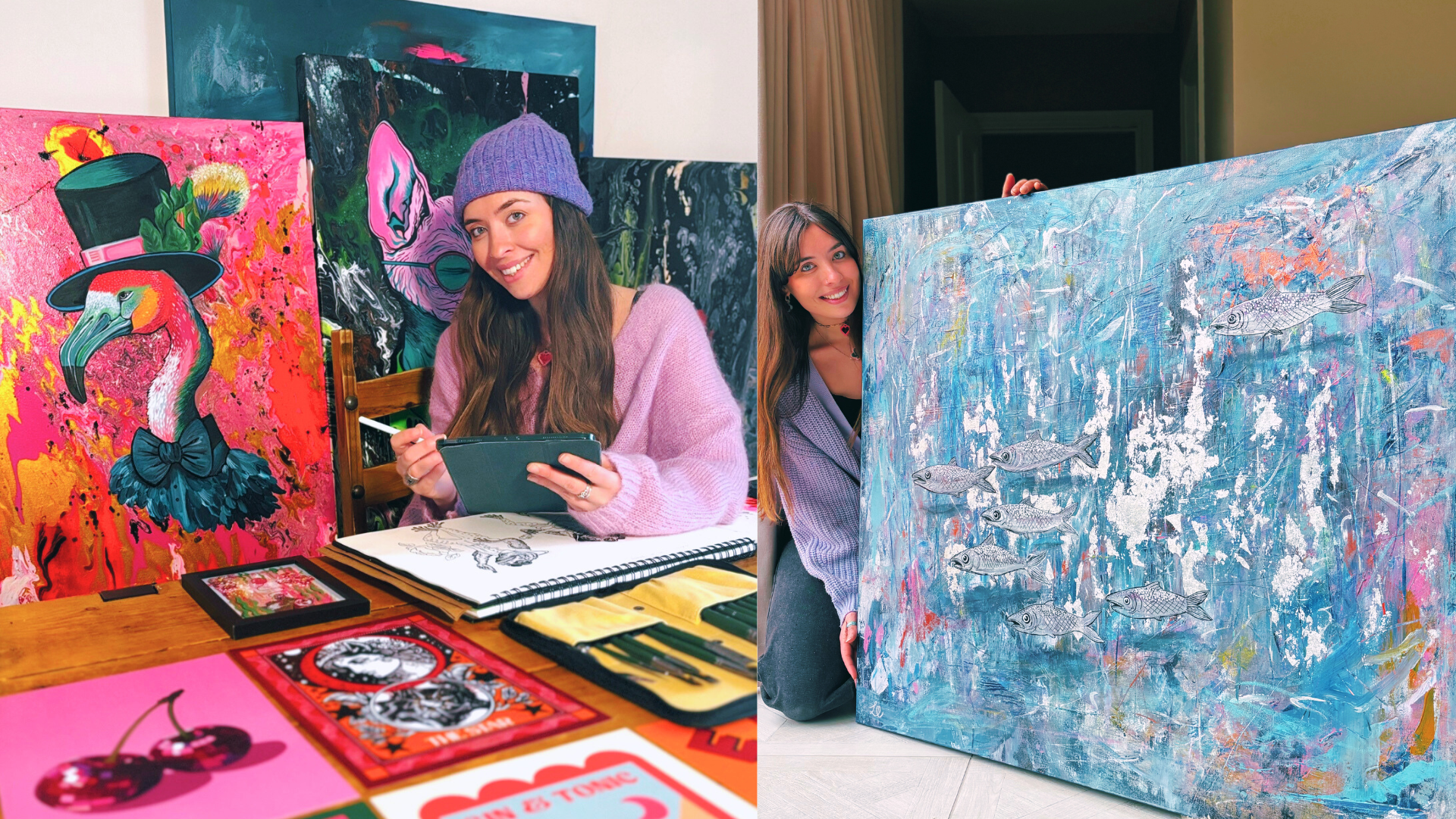 In 2024, Lucie introduced her original paintings. A collection of expressive mixed-media artworks that blend acrylic, pastels, fine liner, chalk, spray paint, and anything else she can find in her studio to create rich layers of texture and depth. Many of these originals directly inspire her illustration prints, allowing collectors to see how her ideas evolve from canvas to digital form.